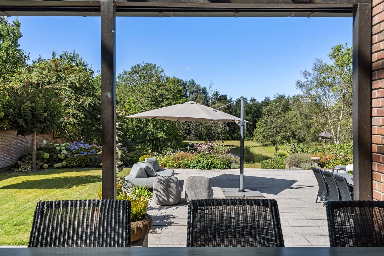 Udelivet kan leves helt ugeneret på den mere end 110 m2 store terrasse i granit, der giver en naturlig forbindelse mellem villaen og den pragtfulde have. Her sikrer Faber markiser, at man også på de varmeste dage kan holde hovedet koldt.