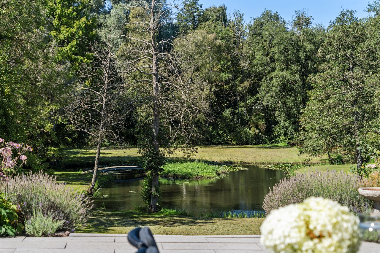 Murene og porten mod vejsiden gør det muligt at aflukke og låse havestykket ved villaen. Odense Å har tilløb til ejendommens sø, hvilket giver en rig bestand af både fisk, haletudser og fiskehejrer. I søen er der en lille ø med ”fast forbindelse via en bro til fastlandet”. På egen matrikel har man endvidere et mindre åforløb, der yderligere bidrager til den naturskønne og afslappende atmosfære, der hviler over haven.